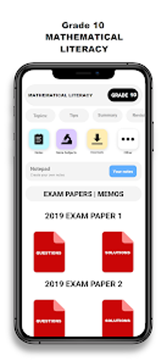 La aplicación Grade 10 Mathematical Literacy es una herramienta educativa diseñada para ayudar a los estudiantes a prepararse para sus exámenes de Matemáticas de décimo grado. Ofrece acceso a una amplia colección de exámenes y memorandos anteriores, organizados por términos. Los temas cubiertos incluyen sistemas numéricos, porcentajes, manejo de datos y numeración económica, entre otros. También proporciona un temporizador integrado que simula las condiciones del examen, permitiendo a los usuarios medir su progreso en tiempo real.